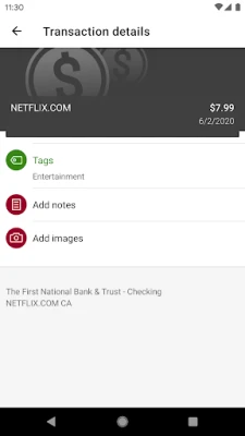 Add Tags, Notes, Images & Geo-Information: By enhancing transactions with custom tags, notes or photos of a receipt or check, you have the ability to stay organized and find exactly what you’re looking for when searching through your finances.