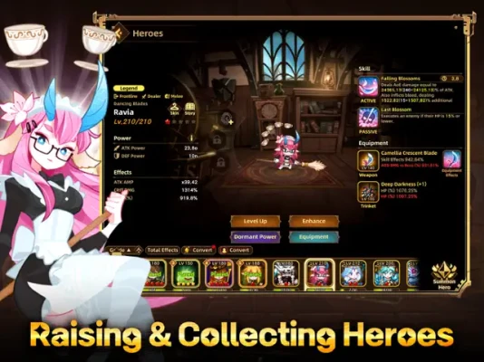 Combine the unique abilities of your heroes and unleash flashy skills to overcome any challenge. Activate synergy among heroes to grow stronger, and faster! Dive in and experience the joy of collecting heroes and rare items!