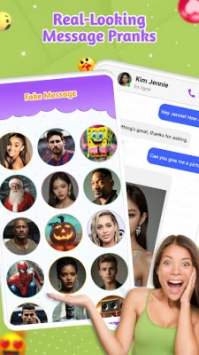 L'application propose également une collection d'appels et de messages fictifs avec des célébrités dans des domaines comme le sport, le cinéma, la musique, le danse et plus encore. Parfait pour les fans de personnalités et pour tous ceux qui adorent créer des moments mémorables et fun. Que vous soyez un passionné de football, un cinéphile ou un fan de danse, vous trouverez des messages et des appels de célébrités qui rendront vos farces encore plus crédibles.