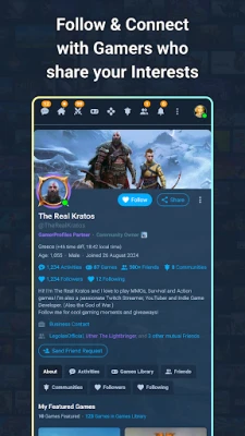 🤝 Follow & Connect with Gamers who share your Interests