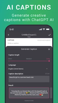 Let Garny integrated ChatGPT AI assist you in generating engaging captions with ease. With Garny Preview for Instagram, your caption planning becomes effortless, giving you more time to focus on expressing your creativity and connecting with your audience through your feed. Craft engaging captions that seamlessly fit into your feed aesthetic, thanks to Garny intuitive planner.