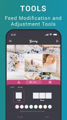 🔸Grid Design: Achieve a visually cohesive feed with Garny grid preview tools.
