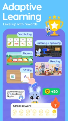 Giggle Academy is a free, AI-driven language learning app for children. It includes language courses, interactive games, children's stories, and learning activities, aiming to cultivate kid's reading, writing, speaking,creativity, imagination, and social-emotional skills.