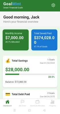 GoalMint helps you take control of your money by guiding you to allocate your income toward multiple financial goals — whether it's saving for an emergency fund, paying off debt, investing for the future, or planning that dream vacation.