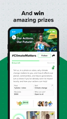 Participate in challenges to learn about critical social issues, improve your skills, and earn rewards. Gain unique opportunities, support important causes, and receive global recognition from major organizations. Make a real social impact in your community and inspire others to do the same. Be the change this world needs!