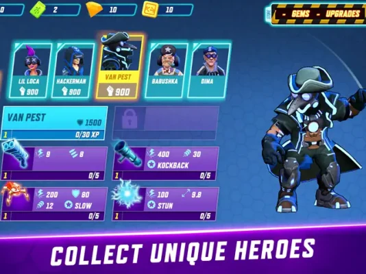 Choose the perfect hero that suits your playstyle – sniper, automatic weapon, melee, stealth and many more!