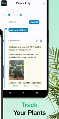 - Keep a journal for each of your plants to track their progress, customize your journal with pictures, notes, and more
