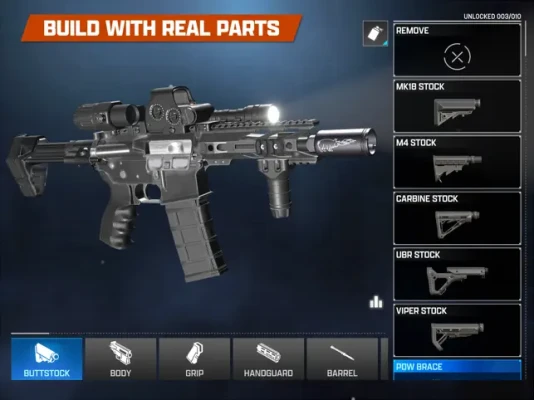 Showcase your mastery by saving and displaying your custom guns in a personalized Gun Rack. Curate your collection, arrange your firearms with precision, and share your unique creations with friends and the global Gun Builder ELITE 2 community.
