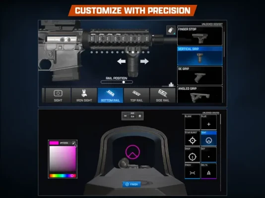 Fine-tune every aspect of your firearms, adjusting barrel length, adding attachments, selecting from a broad range of stocks and grips, and personalizing your guns with unique camos and material finishes. The level of detail ensures an authentic and immersive customization experience.