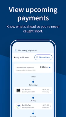 • Stay ahead of your bills - your upcoming payments summary lets you know what’s being paid and when.