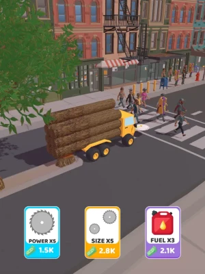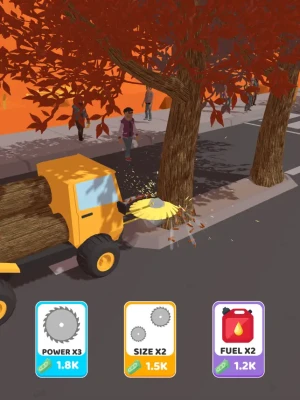 Drive around the city and chop down any trees in your way. Avoid oncoming vehicles and pedestrians. Upgrade your vehicle and saw to chop more trees down!