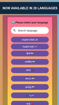 Spanish, Portuguese, French, German, Russian, Turkish, Arabic, Urdu, Hindi, Bengali, Assamese, Chinese, Japanese, Korean, Vietnamese, Thai, Filipino, Indonesian, Nepali, Italian and more — including US & UK English variations.