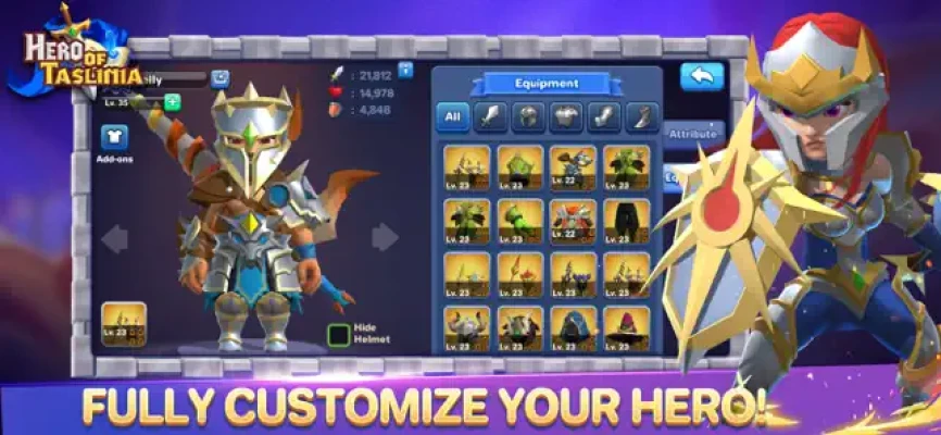 After 20+ years the Hellions are back and evil rules Taslinia again. Crush the Hellion forces with a Team of Champion heroes and become a legend! Start by naming your epic hero then use over 880,000 equipment combos & assemble your hot heroes team battle alliance!