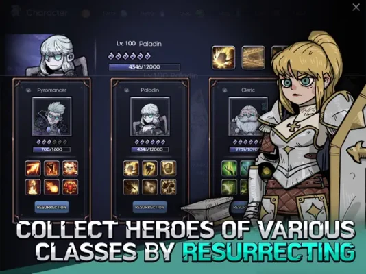 Various Characters to play Players can switch heroes by resurrecting. Play different heroes and use their unique skills. Collect extraordinary heroes to form your own team.
