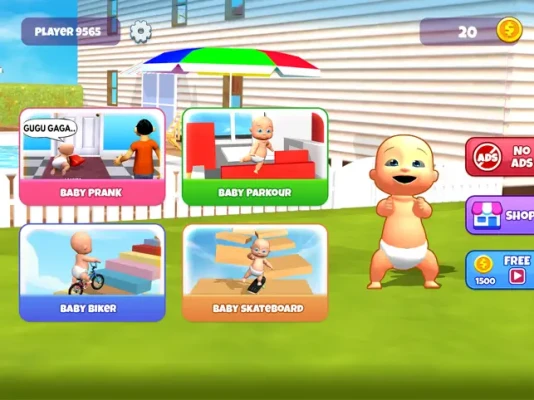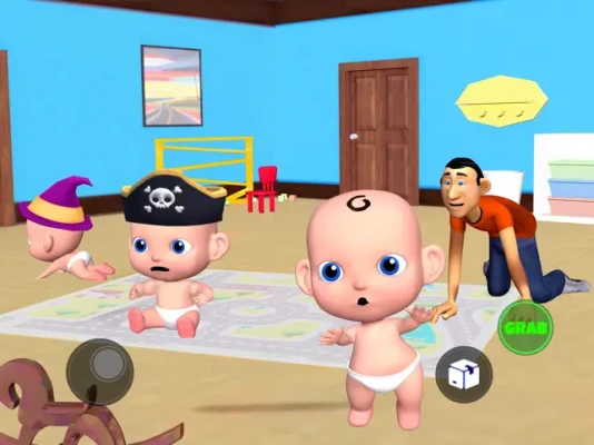 - Move the baby with the joystick and avoid the parents to avoid being caught - You will be very careful to avoid the babysitter, teacher, the police and the grandma... - Find and get items to tease people - Hide or you will be discovered