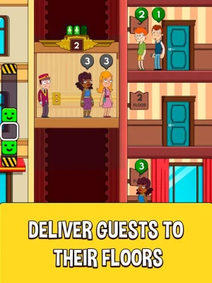 Play elevator simulator: press the up and down buttons correctly to help your guests get to the right floors. Pump your time management skills and discover new levels of the crazy hotel game. Feel the grand hotel mania!