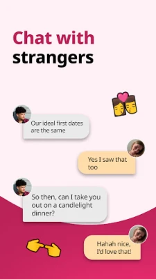 Think of it as a dating app that allows you to be your real self, chat with strangers online over text, and connect with those who think like you and become bff. It's your gateway to anonymous chat with strangers and genuine connections. Discuss your thoughts through chat with strangers, ask relationship questions, or simply share what's on your mind. Join interesting questions and connect with someone and have fun while being yourself.