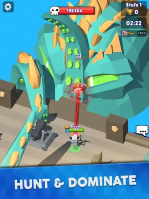 This is not only a battle royale and a game of survival - you also have to keep hunting down enemies to get to the highest score and win against other players. Think about your build, hone your skills, become the hero of the arena!