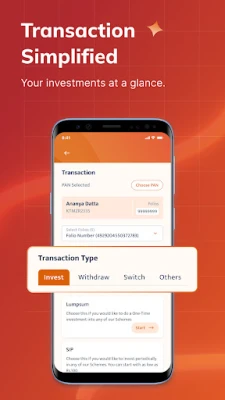 Our app provides an array of transactional capabilities so you can manage your SIPs and other investments seamlessly: