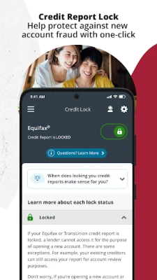 • Lock/unlock credit reports: Helps you control who can access your Equifax credit report.