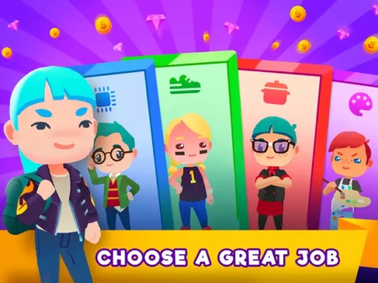 Be an artist, a sportsperson, a tech, a cook... There are many options to choose your new lifestyle! Start with a normal job and improve your professional skills to be a leading figure in your field. Accept job promotions and move up in your company. Work hard and get a pay raise. Earn prestige points to have better skills and a better wage. Accept other jobs to get extra money, and buy the house of your dreams or a classy suit for your new workplace.