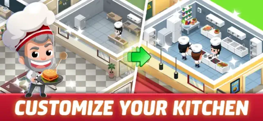 • Hire a star chef, manage finances and profit in your cooking simulator.