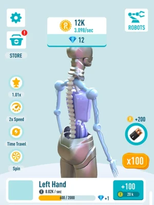 Idle Robots game has a huge selection of presented technologies. Here you'll find such legendary things as Bull, Scorpion, D.O.G, ARM and so on. Don't miss the chance to build and try yourself as a robot designer! Create them piece by piece and unlock more and more every time robots get some changes.
