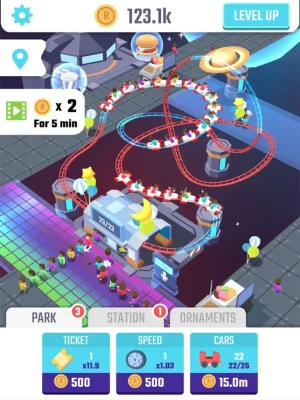 - Unlock CRAZY TRACKS - Welcome NEW TOURISTS - Sell ICE-CREAMS, BURGERS and so much more! - Upgrade your park to MAKE MORE MONEY