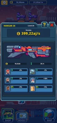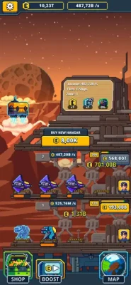 ◆ Upgrade the hangars of your incremental tower and boost their income.
