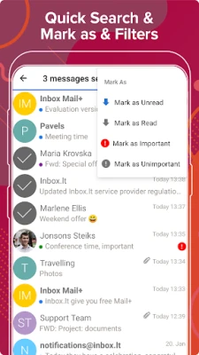 • Swipe actions - instantly delete emails or mark as unread with swipe actions.