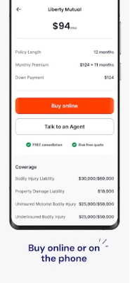 You can do-it-yourself and compare quotes, choose your policy, and get same-day coverage in a few taps - or you can review your quotes in the app, then get tailored advice from a licensed insurance agent. Ready to save?