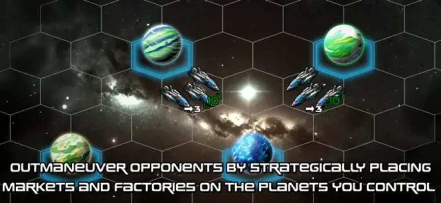In this immersive turn-based strategy game, you command a fleet of spaceships as you explore the galaxy. Battle for control over a variety of planets, each with unique class levels and building capabilities. Master the challenges of navigating through asteroid fields and ion storms in nebulas, using them to your advantage, or seeking refuge from your enemies. Outmaneuver opponents by strategically placing markets and factories on the planets you control. The ultimate goal is to become the dominant space power, rising above the competition to claim victory. Get ready for an exciting journey through the stars in this thrilling game of space strategy.