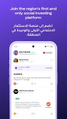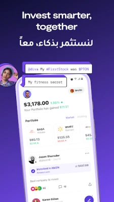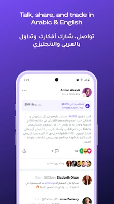 Exchange your thoughts and ideas, share strategies and trade your favorite US stocks and ETFs with a choice of Arabic and English versions.