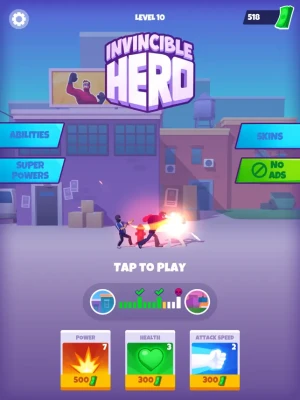 Invincible Hero is just that! Be INVINCIBLE! and BE THE HERO! This game is the BEST fighting game on the market because it truly empowers you to be the ‘Invincible Hero!’ Keep it simple and one TAP to take out the baddies! Or go deeper and spend your hard-earned Super Hero Points forming your Super Hero and their skills the way you want them!!!