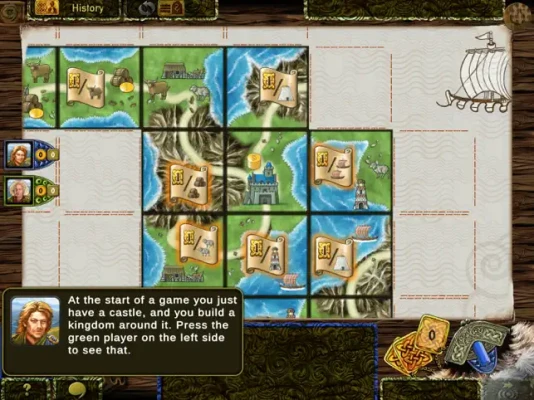 When leaving your castle, build up the Isle of Skye by adding green hills, perfect beaches and mountain ranges. Raise livestock, produce precious whisky, build forts and ships... Expand your territory tile by tile, pay to keep hold of your tiles or sell them to an opponent for the price you've set... Tile price setting, purchases, sales, and structures are the key to becoming the ruler of the Isle of Skye!