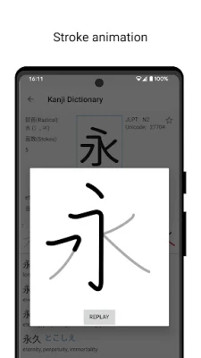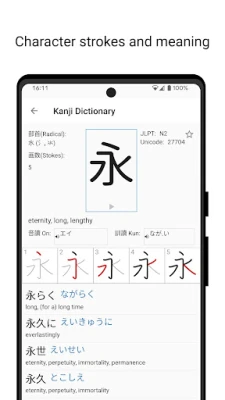 Discover the ultimate Japanese Dictionary / Kanji Dictionary app, designed to enhance your Japanese learning experience. This comprehensive Japanese-English dictionary provides detailed guidance on writing Japanese characters (Kanji) with correct stroke order, making it an essential tool for beginners and advanced learners alike. Whether you're mastering Japanese Kanji during your writing lessons or seeking clarity on stroke sequences, our app simplifies the process. With thousands of Kanji characters, Hiragana, and Katakana, this Kanji Dictionary is your go-to resource for mastering Japanese.