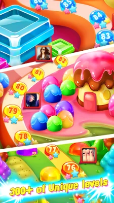 Splash and blast the jellies by connecting three or more matching items. Connect as many similar props as you can in a single touch and make the longest line to unfold sweet surprises. This will help you finish the game levels quickly and earn more Candy stars. The more jellies you blast in a single line, the more you enjoy!!!