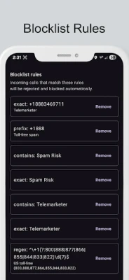 • Number normalization (E.164-style heuristic) so 123-456-7890, +1-123-456-7890, and (123) 456-7890 all match the same rule.