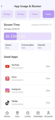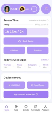 It allows parents to: • Monitor their child’s real-time GPS location • Set up safe zones with automatic alerts • Receive SOS signals from the child’s device • Control app screen time remotely • Get battery status updates • Communicate securely between parent and child devices