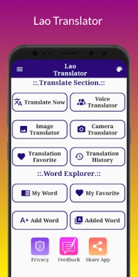 π Download Lao Translator now and embark on a journey of language discovery and cultural understanding. This app is very helpful and useful for Students and non-students too and also helpful for those, who wants to learn Lao Language. This app is so easy to use. No extra Knowledge need to use this app.