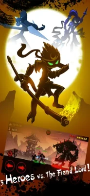 Many stickman heroes waiting for you to choose: Gus, Athy, Feist, Bladey, Zilong, Monk and more