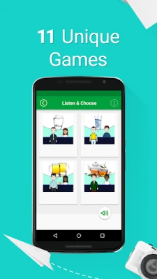 ✔ 11 fun games – a innovative approach to practice your listening, writing and speaking skills.