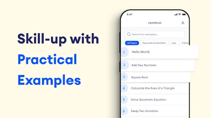 To make learning C++ interesting, the app provides dozens of practical examples that you can edit and run on the built-in C++ compiler. You can also use the compiler to write C++ code from scratch.