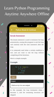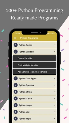 Dive into the world of Python programming with our user-friendly app, packed with clear explanations, practical examples, and interactive exercises. We cover everything from the fundamental basics to more advanced concepts, ensuring a smooth learning journey for all levels.