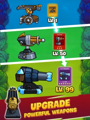 - Upgrade weapons, heroes, and your turret to build a stronger team.