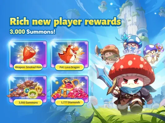 Claim Your Exclusive Download Rewards:Lava Dragon, Weapon: Smoked Ham, 1,777 Diamonds and more rewards.