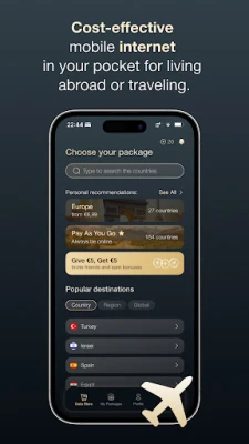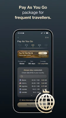 Simply top up your balance and travel without any package expiration limits—we’ll take care of your internet access. The app will automatically switch to your new location and notify you of the applicable rates.