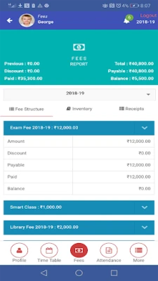 Fees: Parents and Students can have a complete picture on fees paid to School and get notified on the payment dues.
