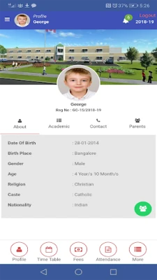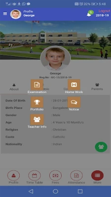 Portfolio: User can see student’s information like Personal Details, Achievements, Transportation, and Books Read etc in one view.