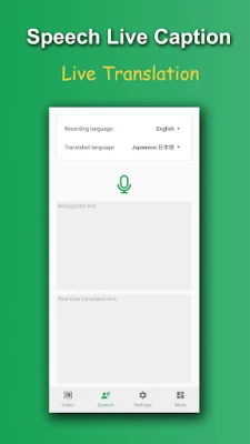 * Record speech, recognize text in real time, and translate into other languages